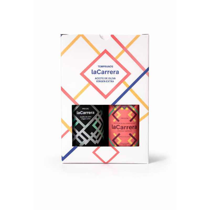 Estuche de cartón de 2 botellas de temprano Picual/Arbequino